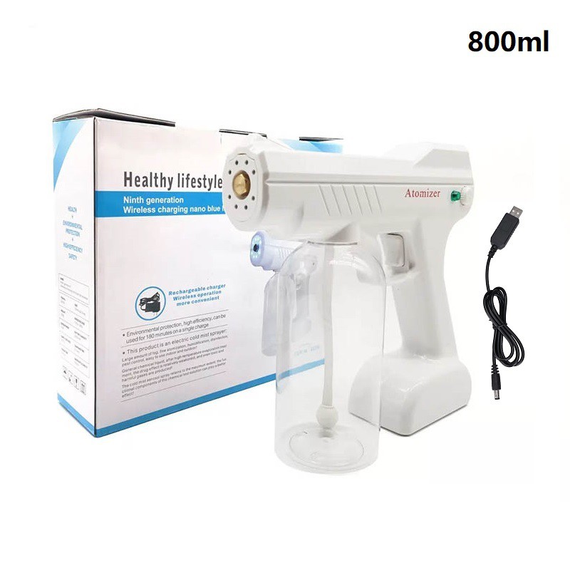 Suitable for home workplace car toilet use7800ml large. Updated 1300W 800ML Portable Wireless Sprayer Machine Disinfection Blue Light Nano Steam Spray Gun Disinfection Nano Spray Gun EUUS Plug Atomizing Sprayer FeaturesElectric lithium battery powerful battery life available for 150 minutes on one chargeHigh-quality nano spray port using PA high temperature resistant material fast fogging large amount of fogPorous heat dissipation the. The Ninth Generation Wireless Charging Blue Light Nano Atomizer.